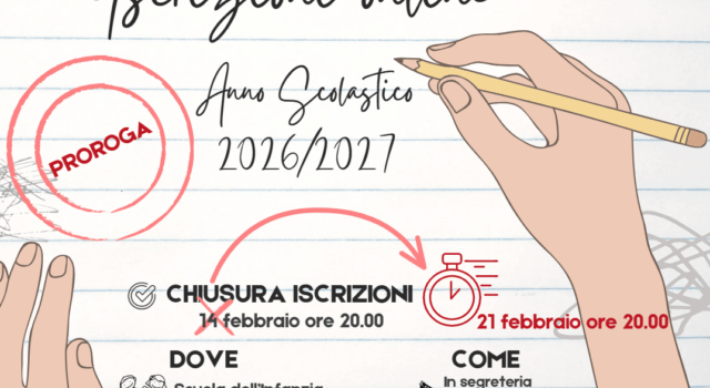 Proroga delle iscrizioni alle scuole dell’infanzia e alle scuole del primo e del secondo ciclo di istruzione per l’anno scolastico 2026/2027