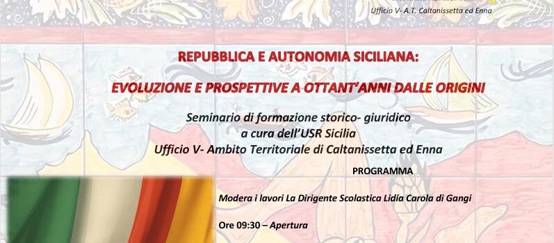 Seminario di formazione storico-giuridico: “REPUBBLICA E AUTONOMIA SICILIANA: EVOLUZIONE E PROSPETTIVE A OTTANT’ANNI DALLE ORIGINI” – 16 aprile 2026 Istituto d’Istruzione Superiore “E. Majorana – A. Cascino”, Piazza Armerina (EN).
